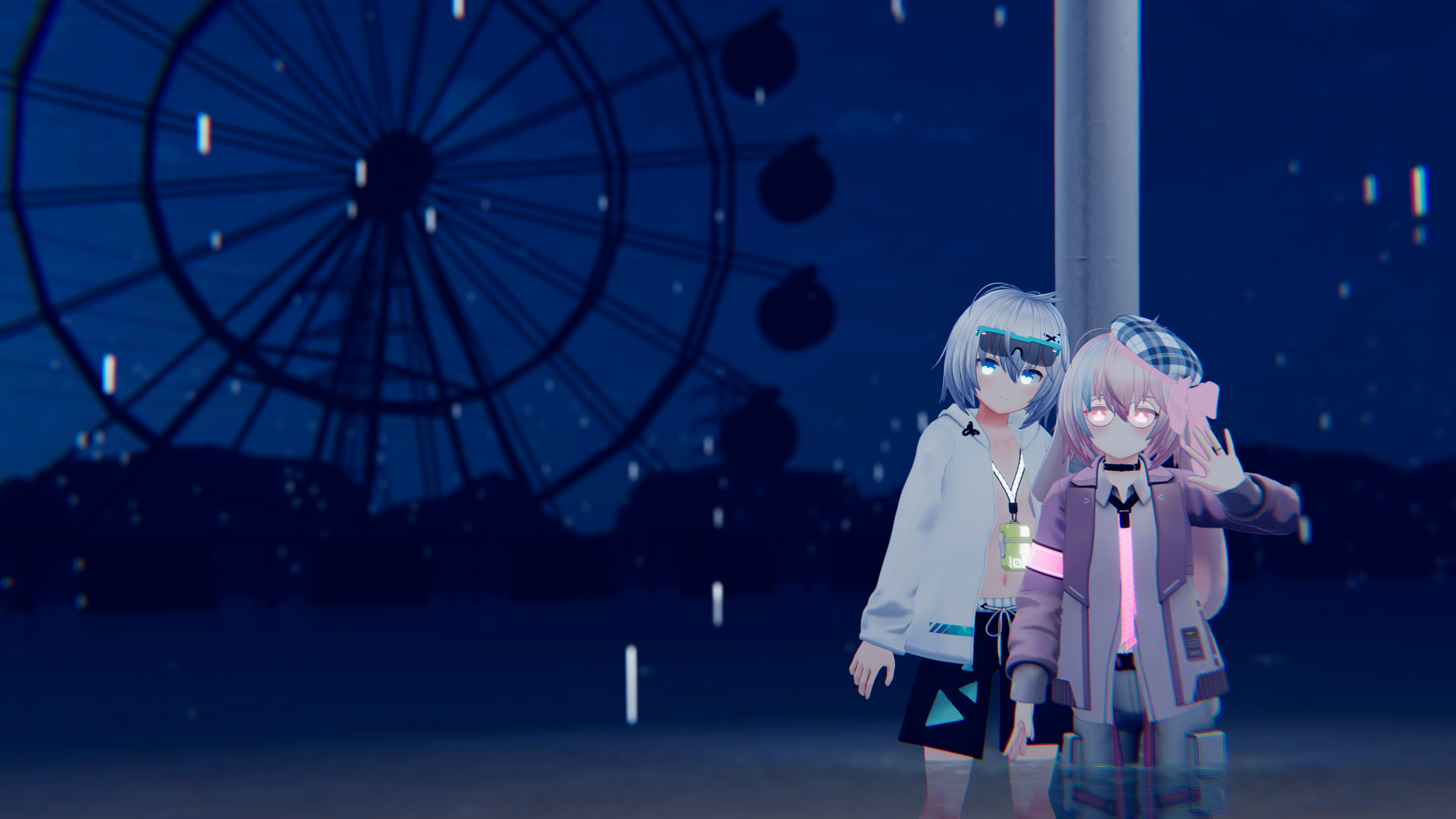 ネージュくん2人でエモ写真 2024-08-25 01:41 Tweet #VRChat #写真 #ぜれアバター #ネージュ potapoyoさんと2人でネージュくんでエモ写真撮ってました。 最近観覧車乗ってないな〜と思ったけど、3月に香港行った時に乗ったし、そんなに頻繁に乗るものでもないかも。