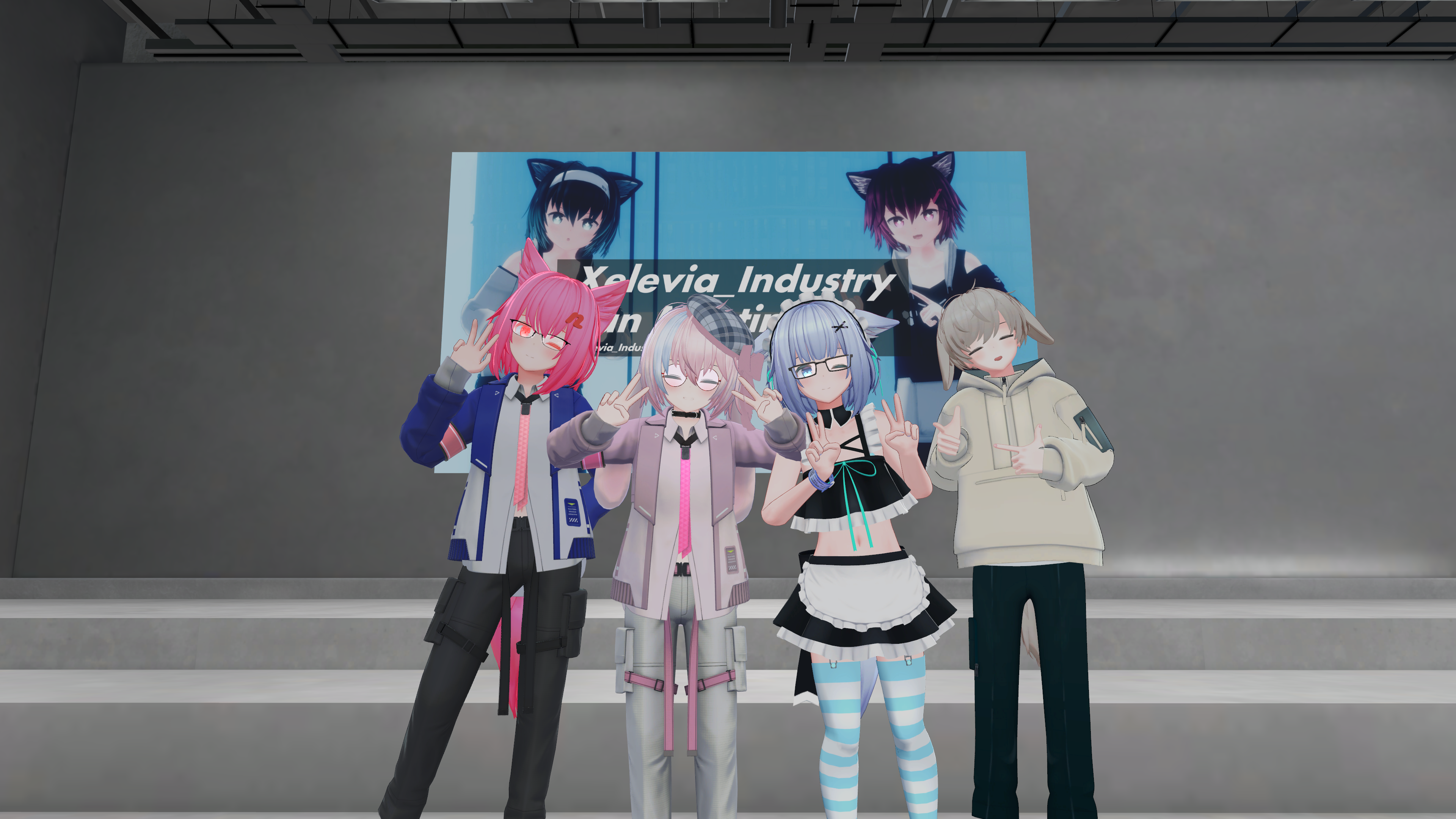 4回目のXelevia_Industry_FanMeetingで撮った集合写真です。 2インスタンスともfullで、集合写真を撮れなくて悲しみに暮れていたところを、一緒に集合写真を撮ってくれたみなさんです。 なのなのさん、めうるみさん、ぽたぽよさん、ありがとう!